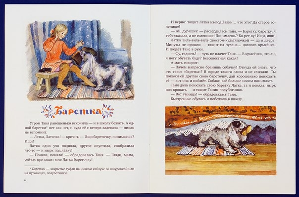 Бианки был мне хорошо знаком своей "Лесной газетой", больше как-то его и не читала. Поэтому маленькую книжечку "Латка" прикупила с удовольствием ( Изд-во "Речь", серия "Любимая мамина книжка"). Сюжет прост и незатейлив - девочке Тане дядя из Ленинграда прислал в подарок щеночка, маленького, странненького, с большими ушами и короткими лапками. Хвост культяпкой, и на одном глазу темное пятно - запЛатка. Так щенок получил имя!![]()