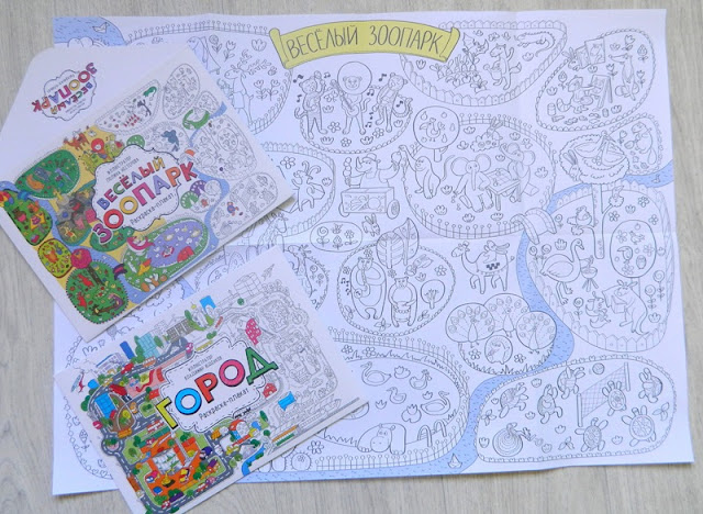 В серии две раскраски: "Веселый зоопарк" и "Город". Раскраска плакат размером 76*56 см. Очень удобно раскрашивать на полу, но думаю если повесить на стену тоже будет очень здорово:))