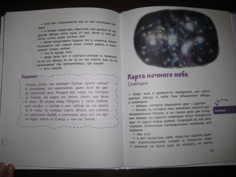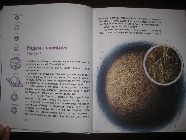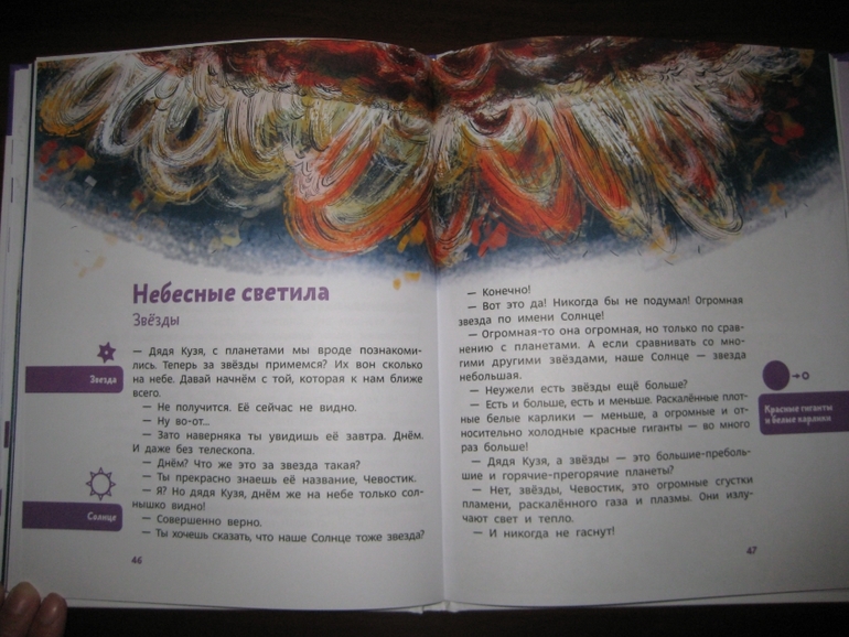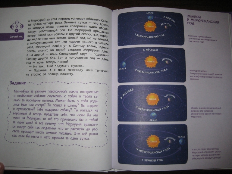 Впрочем, бурчу-то только я одна :) А ребенок пребывает в полном восторге! Даже несмотря на то, что у него уже совсем не первое знакомство с астрономией и книга для него с содержательной точки зрения немного простовата. Но он сказал, что с ее помощью он будет свои познания система... система... во!... систематиРИзировать!