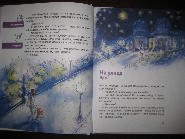 Читать интересно. Хотя вот если оценивать содержательную сторону книги, я бы сказала, что в ней даются все-таки только самые минимальные знания об астрономии, поэтому она хорошо подходит именно для знакомства с этой отраслью знаний. Минимальные, но вполне соответствующие современным представлениям: например, среди планет Солнечной системы не упоминается Плутон, который по последним классификациям астрономов уже не считается планетой.