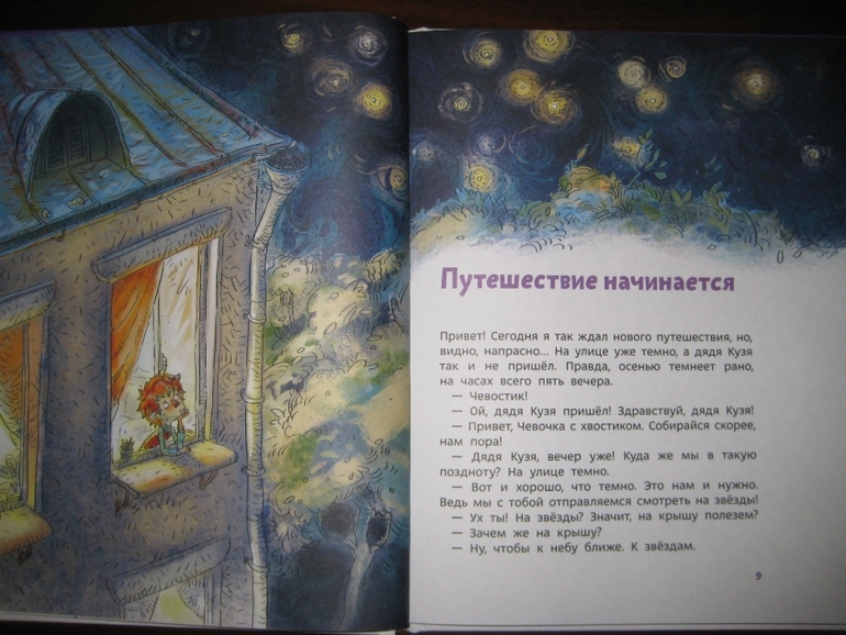 На этот раз Чевостик или Чевочка с хвостиком, как называет его дядя Кузя, отправляется в путешествие в обсерваторию, чтобы узнать кое-что новенькое о планетах, образующих Солнечную систему, о звездах и созвездиях, о том, из чего состоит комета и откуда у нее хвост, чем отличаются метеороиды, метеоры и метеориты и т.д.