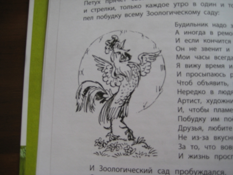 "Старый Смотритель сидел в пустой клетке Льва, и его голова - белый одуванчик - задумчиво склонилась к плечу. Вокруг собрались все звери. Они молча смотрели на Смотрителя, и глаза их были полны печали.