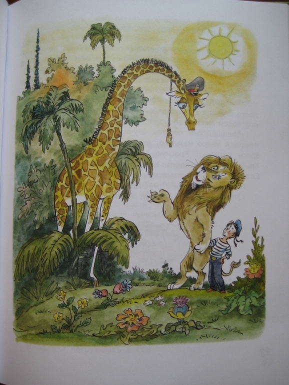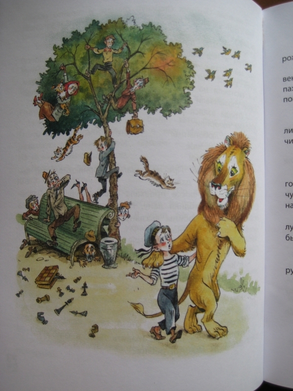 Лев очень заволновался. Он вбежал в клетку, наклонился к продавщице мороженого и стал слушать ее сердце. А все звери затаив дыхание ждали, что будет дальше.