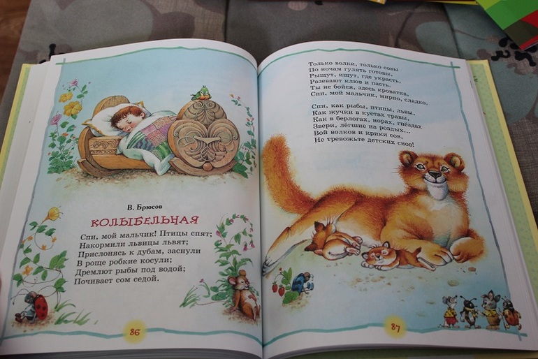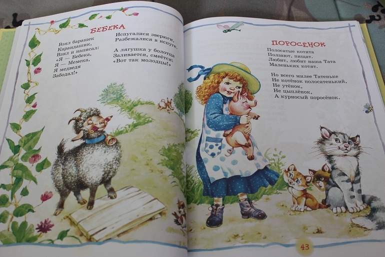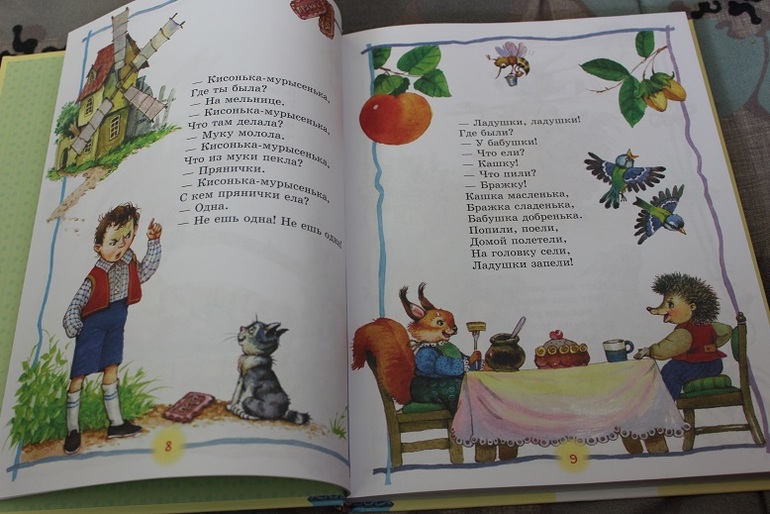 И слава богу, что один. А то бывает такой борщ из иллюстраций, прямо диву даешься. Три стишка яркие, три - блеклые, где-то крупные картинки, где-то мельтешат, и стили разные у всех. Здесь же все причесано, уложено, лаком сбрызнуто и… вишенкой украшено.