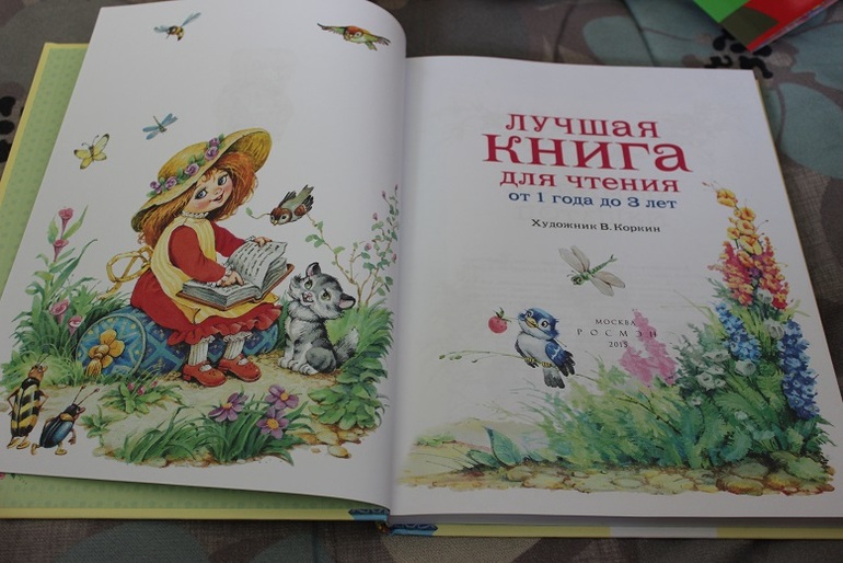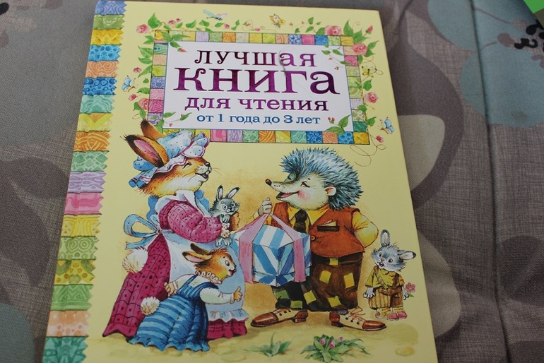 С названием в издательстве не мудрили, скромничать тоже не стали. Всего-навсего «Лучшая книга для чтения от 1 года до 3 лет». Как-то так. И ведь трудно с ними поспорить - уж больно содержание правильное, выдающееся и необходимое. Всего понемногу, найдутся тут и нежные убаюкивающие колыбельные с мягкими картинками, и ритмичные озорные потешки, и лучшие стихи от самых крохотулек серии "Игрушки" Барто до длинных и красивых, ну и, конечно, сказки.