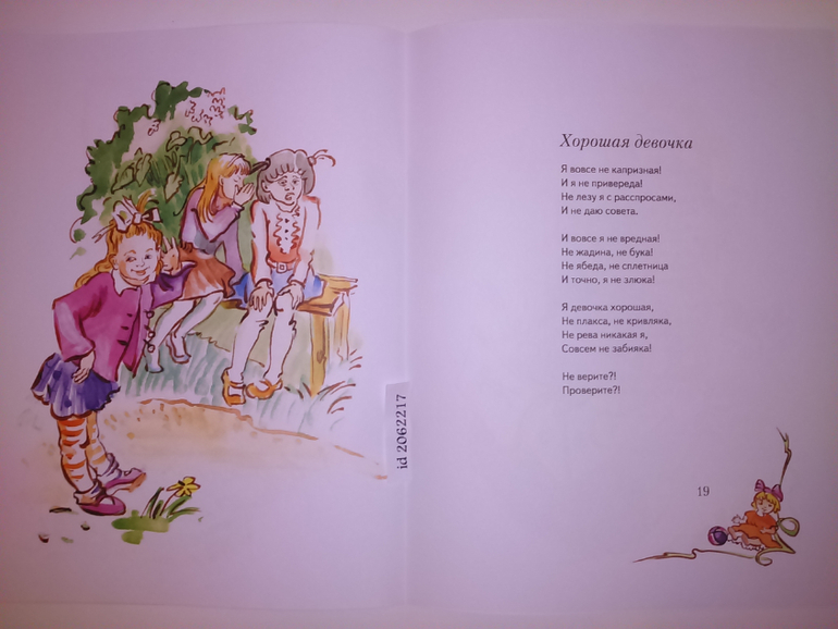 Это книга с милыми, поучительными стихами о девочках и мальчиках, которые не всегда ведут себя так, как надо. Они капризничают, вредничают или просто куксятся без уважительных причин. Издание стало одним из моих любимых благодаря не только содержанию, но и прекрасным акварельным иллюстрациям, выполненным художницей Ольгой Лях.