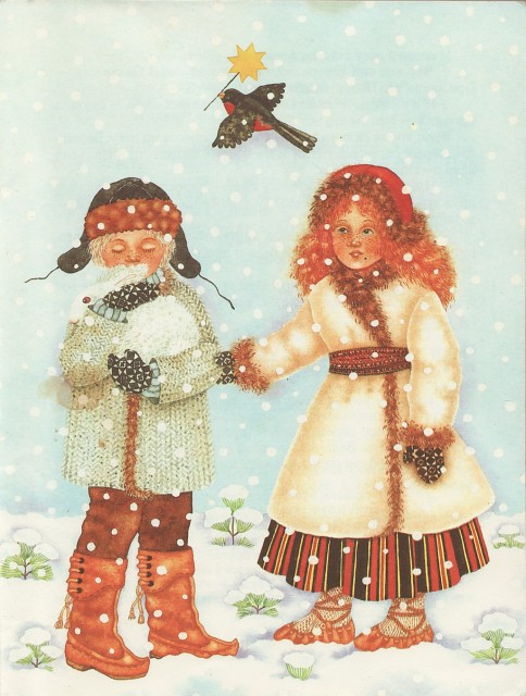 Точнее, иностранка. Художница из Эстонии, которая собаку съела на зимних сказках. Ну, как еще объяснить, что в ее же чудесных иллюстрациях вышла еще одна «Зимняя сказка», автора Сакариас Топелиус. Вот нашла обложку и еще одну картинку, чтобы поближе познакомить нас всех с живописицей, которой особенно хорошо удаются рыжие курчавые волосы и веселые веснушки.