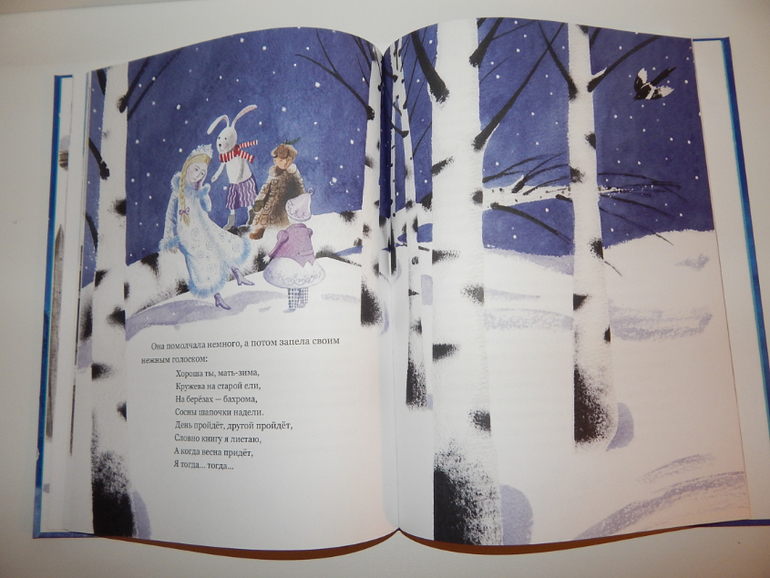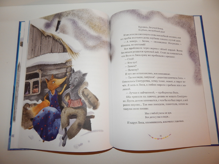 Сюжет, конечно, простой для нас взрослых, но для детей это целое приключение! И герои интересные - Снегурочка, заяц Митрошка, Мудрый Ворон, Колокольчик, Шишечка, ветер Афанасий, злой Волк и хитрая Лиса. Дочка слушает сказку с интересом, читаем по 1 главе на ночь.