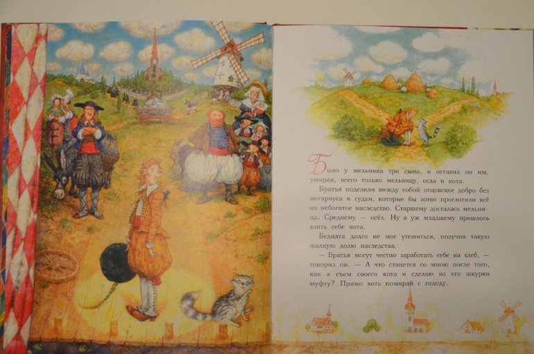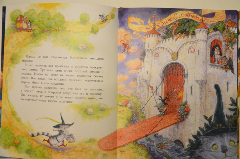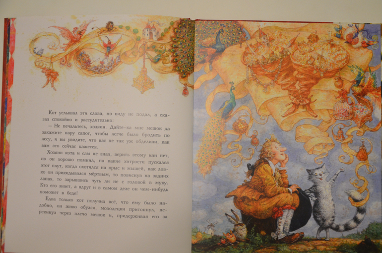 Задалась я вопросом: Какую книгу Ариша открывает чаще всего в последнее время? И ответ однозначен - "Кот в сапогах" в сказочных иллюстрациях Антона Ломаева. Ещё до появления этого издания в доме, мы частенько играли по сюжету сказки, история не стала новинкой.