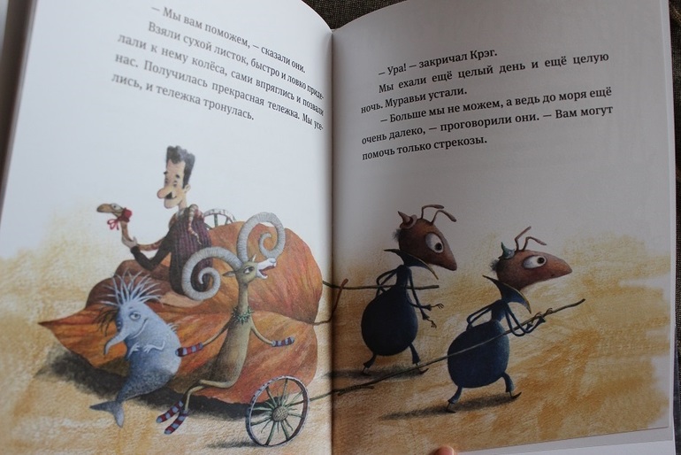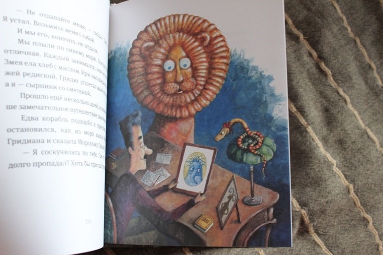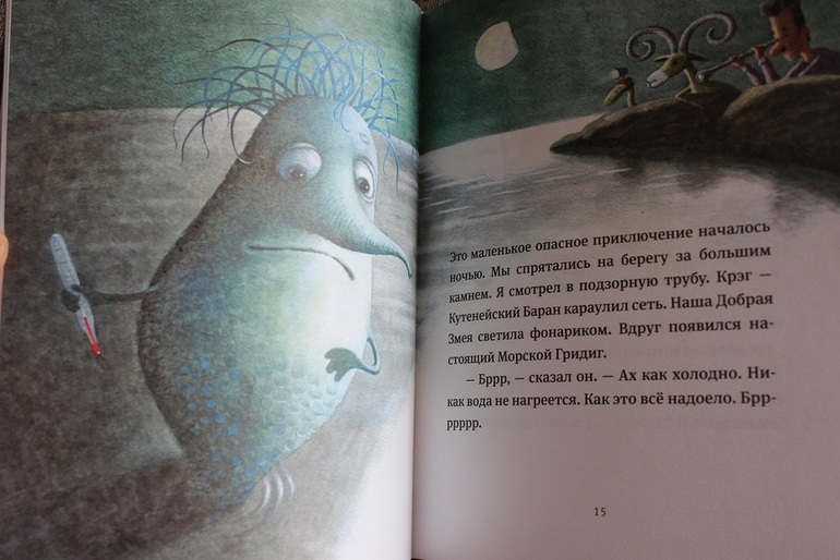 Книга спокойная и умиротворяющая. Неторопливая. Местами абсурдная и столь образная, что диву даешься. Такую очень хорошо читать на ночь, не сразу, а по частям. К ней приятно возвращаться, рассматривать, вновь погружать в невероятную историю о забавных сказочных персонажа - баране Крэге, доброй-доброй Змее, Морском Гридиге и авторе, разумеется.