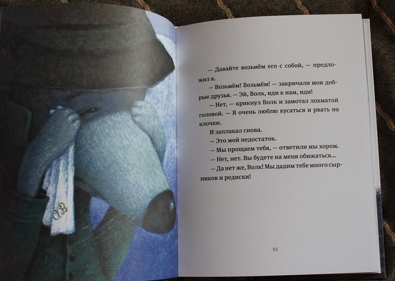 Рисунки успокаивающие, какие-то потусторонние. Невероятные! Художник - Евгений Антоненков (мне он знаком по «Волшебному мелку» и «Глупой лошади»). Но самое обалденное (не побоюсь этого разговорного словечка) - плотнющие листы. Будто листаешь альбом для рисования акварелью. И кто бы тут еще экономил место?! Посмотрите на содержание - оно растянуто безбожно, будто остались лишние страницы. Это просто шик, верх душевной широты и щедрости.