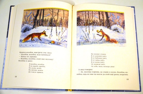 У меня колобок всегда на фоне тропинки и травки представляется))) А тут зима - странно..А книжка чудесная!