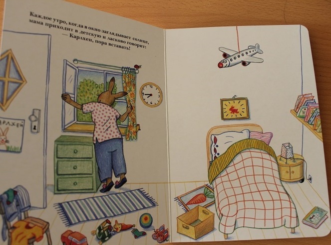 Книги про Карлхена - вернусь к ним - могут стать одними из самых первых. Совсем немного текста, отличный, плотнейший картон, удобный для маленьких рук формат, скругленные углы, мягкая, умиротворяющая цветовая гамма.