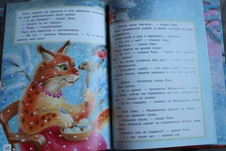 Однозначный недостаток книги - бликующая меловка. До сих пор озадачена - зачем ее вообще изобрели, ведь при свете вечерней лампы толком разглядеть ничего невозможно! Это ж какие махинации и танцы с бубном надо выполнять на каждом развороте, чтобы увидеть всю картинку. Зато вид подарочный, ага. Но я бы предпочла старый добрый офсет.