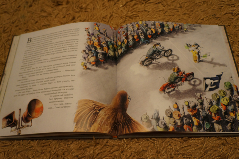 Квадратный формат книги, плотные мелованные страницы. Страницы тонированные, как будто промасленные. Возрастная категория 6-12 лет, это если читать осознанно. Но фанатам техники книга будет интересна уже с 4 лет, думаю.