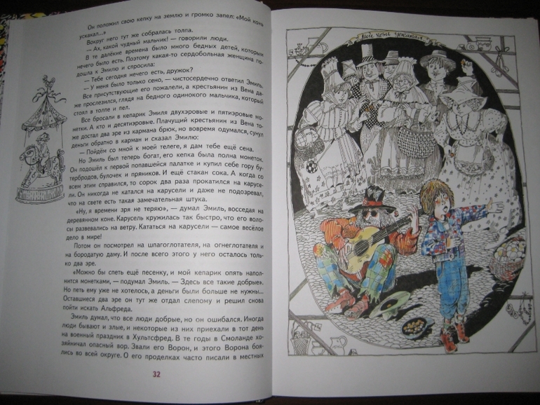 Честно говоря, если бы я покупала теперь, то выбрала бы другое издание (о том же, кстати, сказал и сын), вот это: http://www.labirint.ru/books/441460/ Но менять не стали, хотя и скидки были хорошие на издательство, очень уж хотелось поскорее прочитать :) И вот несколько вечеров прямо ухохатывались, настолько Линдгрен забавно описывает эти шкодные проделки Эмиля. Но он ведь все искупил своим самоотверженным поступком в конце книги, своей верностью дружбе и упорством, когда вез умирающего Альфреда через пургу, по бездорожью в больницу. Уж признаюсь честно, я даже немного прослезилась, настолько трогательно повествует об этом Линдгрен... :)