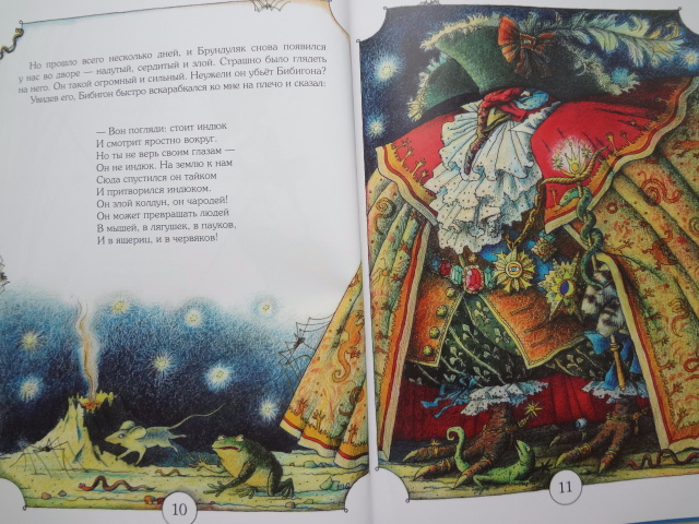 С иллюстрациями Елены Базановой Бибигон нам милее всего) Такой озорной и хулиганистый мальчишка, очень похож на моего Андрюшку! В стихотворной форме (есть и небольшие прозаические вставки) перед нами открываются удивительные приключения маленького человечка по имени Бибигон. Здесь есть место приключениям, схватке со злым колдуном Брундуляком, страшным пауком, полет на стрекозе, морское приключение в калоше и чудесный полет на Луну и спасение родной сестры Цинцинелы из лап страшного дракона!