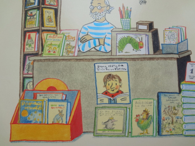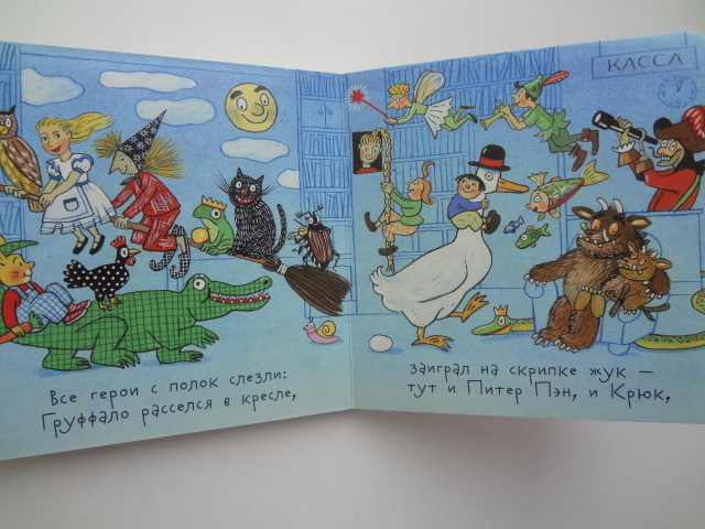 Ну а про Альфреда - это вообще самая интересная история с точки зрения книг. На иллюстрациях мы видим героев сказок (Питер Пен, Дон Кихот, голодная гусеница, крот, Карабас, Пиннокио, Груффало, капитан Крюк и др.) и обложки известных нам книг. Вы их все узнали?