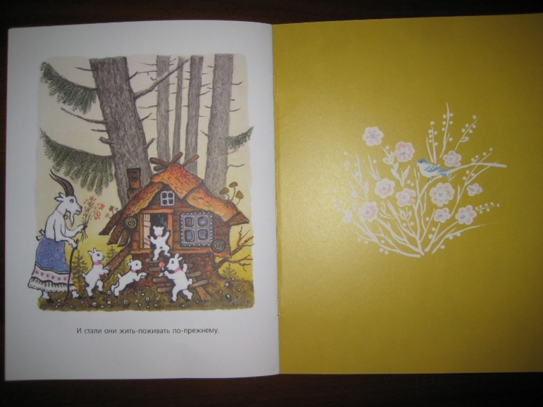 Шрифт крупный, но речи козы и волка, выдающего себя за козу, обращенные к "козлятушкам", отпечатаны чуть мельче.