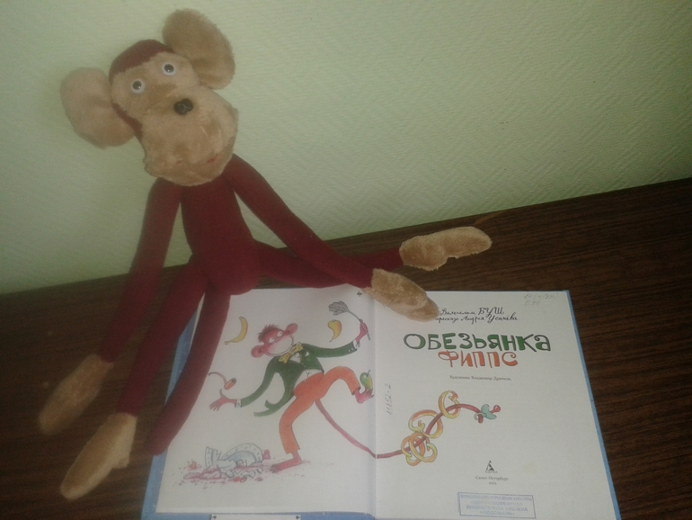 20. Вильгельм Буш в переводе Андрея Усачёва. Обезьянка Фиппс. Хотела взять про Веру и Анфису, но её пока другой читатель взял. Встретила вот этого Фиппса. Олесе одна чудесная бабушка сшила обезьянку, мы назвали её Анфисой, а теперь у неё появилась фамилия - Фиппс. Правда же, одно и то же лицо?