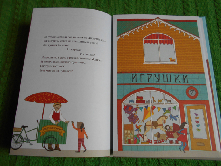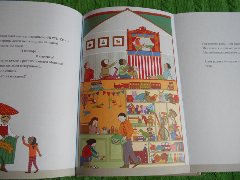 Каждый разворот это новый магазин - булочная, фарфор, сладости, магазин игрушек, музыкальных инструментов, зоомагазин, цветочная лавка.