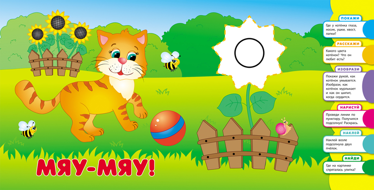 На каждом развороте вы найдете 6 типовых заданий. Они очень просты, но разнообразны. В зависимости от возраста ребенка предложите ему найти и показать какую-нибудь деталь на рисунке, рассказать небольшую историю, приклеить нужное количество наклеек. Если вы поймете, что ваш непоседа устал внимательно искать мишкин хвостик, предложите изобразить, как мишка ходит, и потопайте по комнате вместе. Всего через несколько таких уроков вы заметите, что линии становятся ровнее, а малыш все быстрее замечает мелкие детали на рисунках.