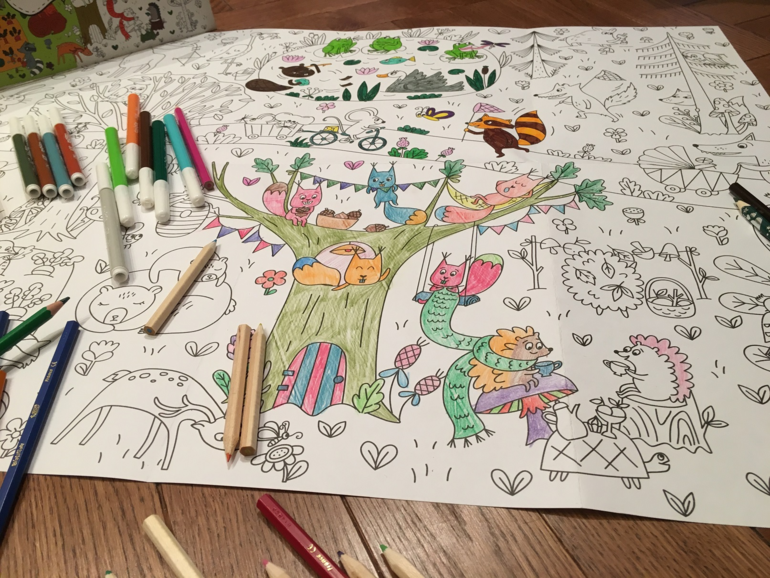 Раскраску можно использовать, как пособие для занятий. Можно считать животных, грибы, цветочки и деревья. Можно выдумывать самые разные истории про зверей и сочинять забавные диалоги, в которых они участвуют. Можно загадывать ребенку загадки, чтобы он искал разные предметы. И, конечно, рисовать и раскрашивать милые мультяшные картинки, сколько душе угодно!