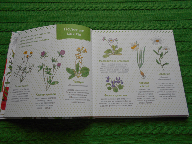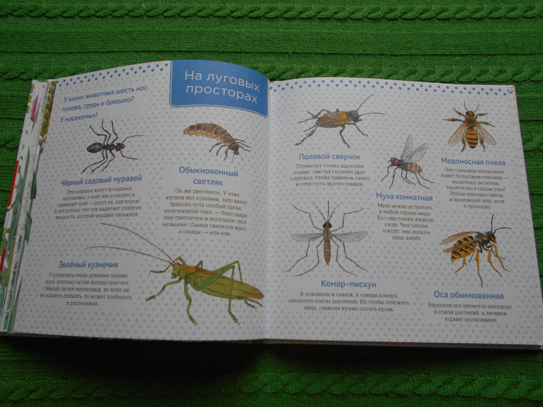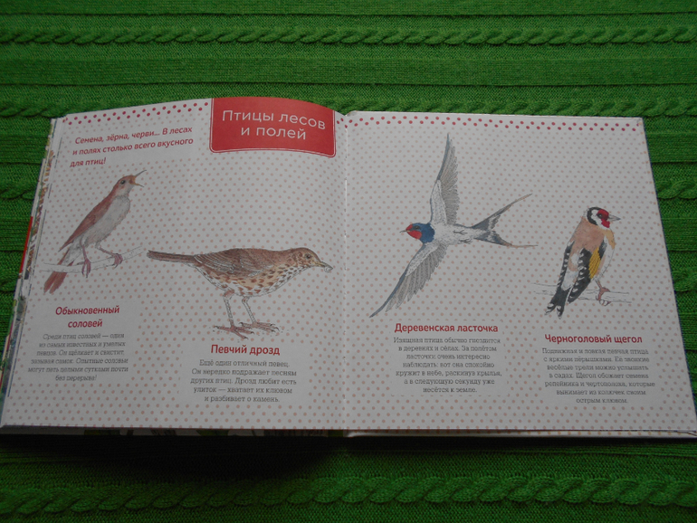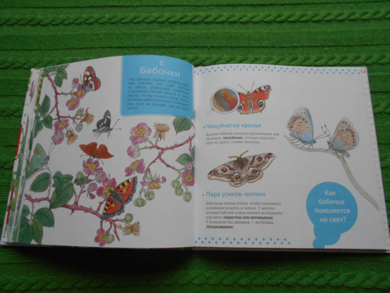 Следующий разворот идёт без клапана, и там представлены другие растения, животные, насекомые, речные жители, лесные жители, птицы и небольшая информация о каждом их них.