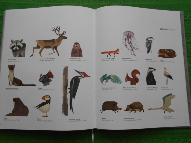 О некоторых животных есть небольшие зарисовки/заметки, интересные факты. Например, я поняла почему скорый поезд "Сапсан" назван именно так (да, знаю, что для многих это и так понятно, но я правда не знала!) Жаль, что про Сайгака ничего не написано, хотелось бы понять значение фразы "Прыгать, как Сайгак" Нет, я бы сказала, жаль что заметки есть не про всех животных, хоть многие их них такие родные и знакомые, но все равно было бы здорово почитать несколько строк про каждого!