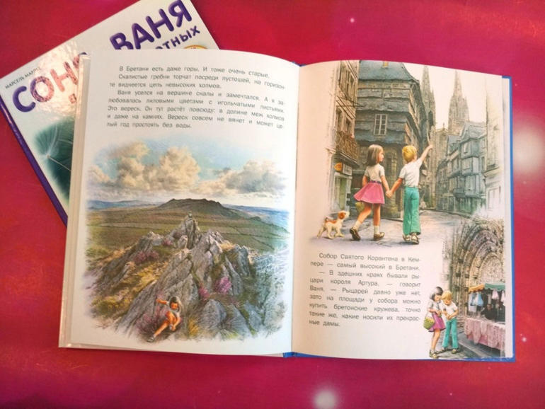 Книга "Соня и Ваня на каникулах" рассказывает о путешествии друзей по старинному французскому городу , попутно раскрывая исторические подробности и архитектурные нюансы. Во второй истории дети попадают в качестве зрителей на гонки ретро-автомобилей. Ваня увлекается машинами и охотно делится с Соней всем, что знает. А Соня в восторге от старинных костюмов участников гонок!