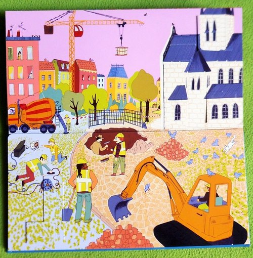- на стройке на городской площади и на археологических раскопках;