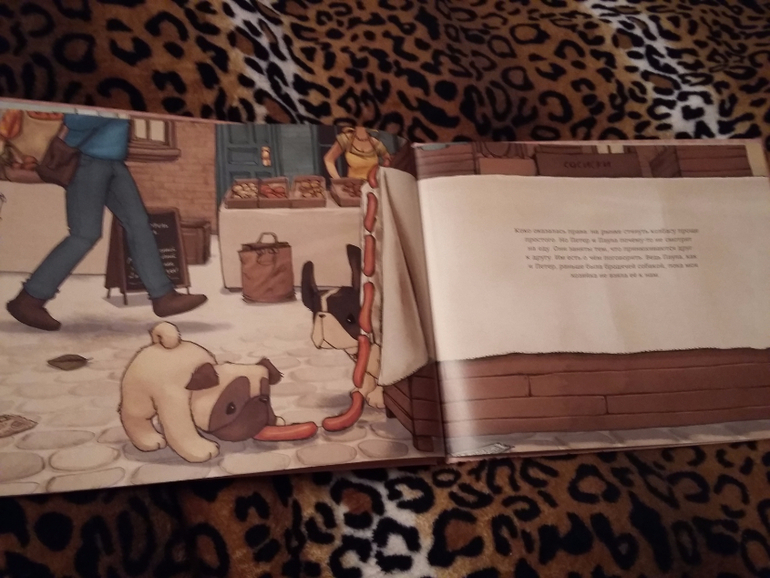 Иллюстрации на весь разворот, большие, красочные и красивые. Книга не только приятная для чтения и визуального восприятия, но и очень поучительная. Книга ненавязчиво и проецируя на собачек, учит детей дружбе, поддержке, помощи, смелости, взаимовыручке, доброте...