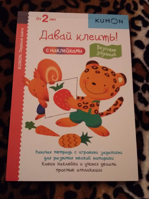 Сегодня расскажу о тетради KUMON. Давай клеить! Вкусные задания из серии «Первые шаги» от издательства «Манн, Иванов и Фербер».