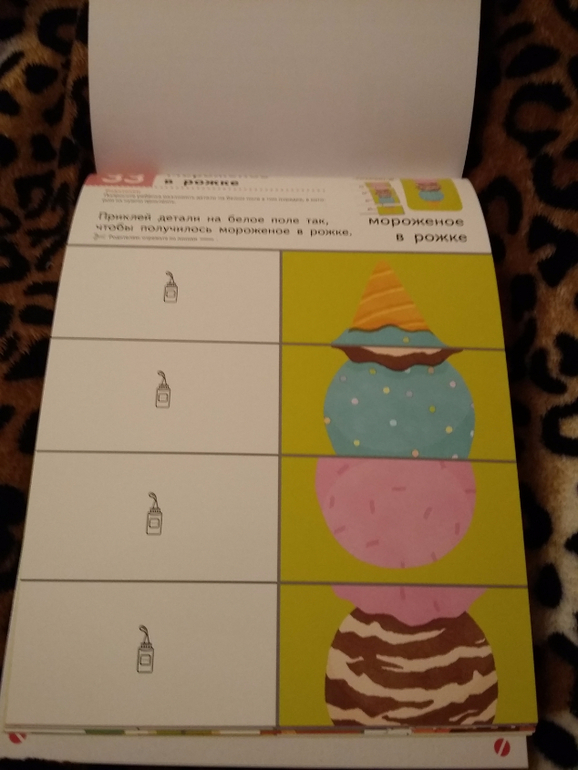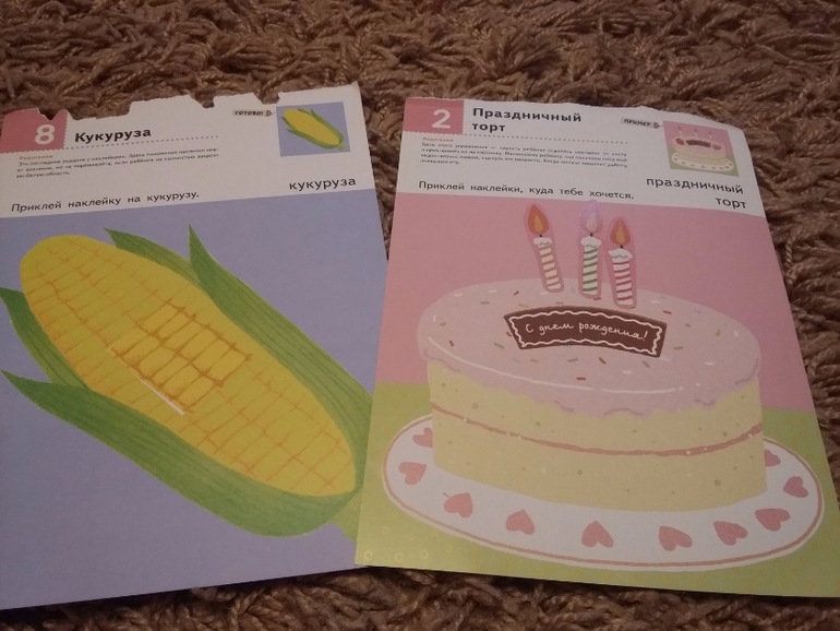 Первые несколько заданий были совсем легкие. Приклеить наклейки в нужное место.