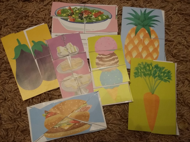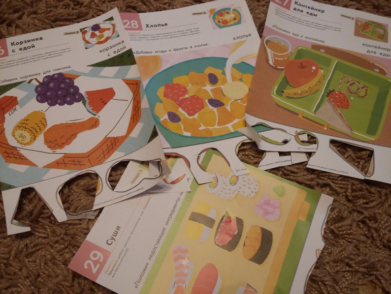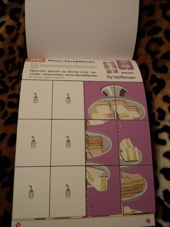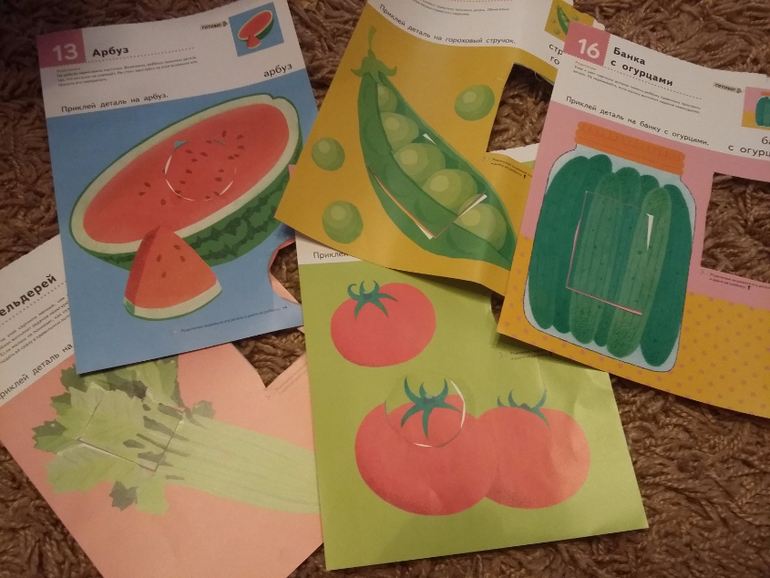 Постепенно задания стали усложняться, нужно было не только вырезать, но и приклеить кусочки в правильном порядке. Для тех кому сложно сориентироваться есть картинка-образец.