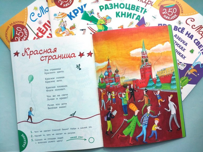 Размышления обо всем этом натолкнули нас на идею создания серии по произведениям Самуила Маршака с современными иллюстрациями, игровыми заданиями и наклейками. Новый взгляд на любимые стихи книгам подарила художница Маша Алая. Задания нацелены на проверку внимания и наблюдательности. Выполнить их помогут 250 наклеек, спрятанных в каждой книжке.