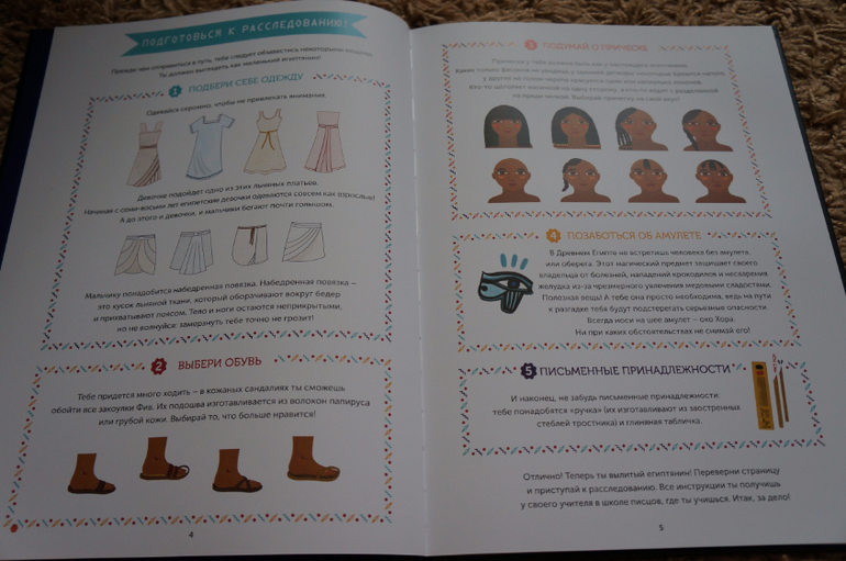 Кстати, как взяла в руки эту книгу, перед глазами сразу нарисовался квест, воплощенный в жизнь. Было бы интересно провести его на детском тематическом дне рождении. На первых страницах есть описание одежды и необходимых атрибутов.