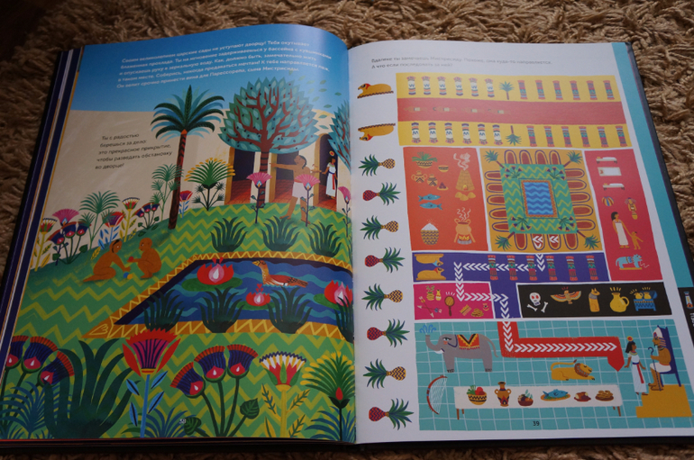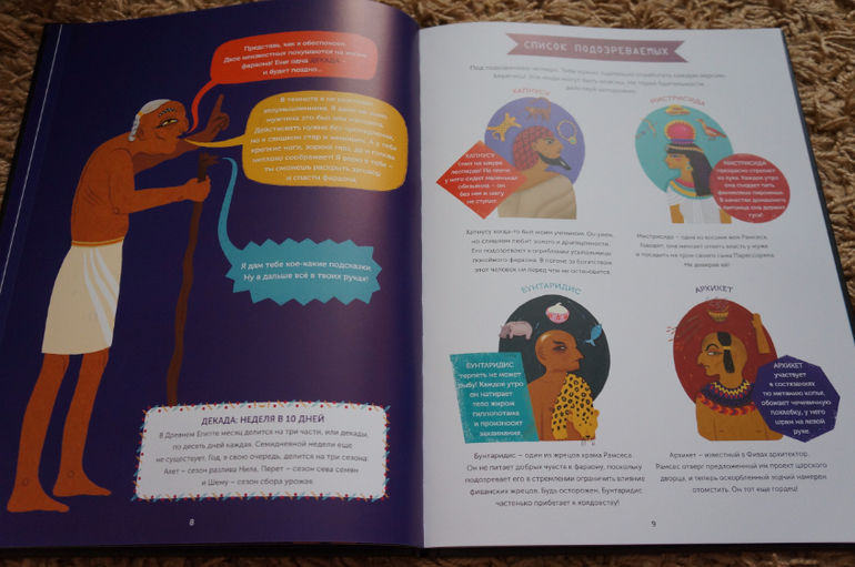 Конечно, я не упустила возможность и с большим удовольствием прошла квест сама. Мы сразу договорились, что не будем озвучивать свои выводы и имя заговорщика, а потом сверимся. Книга была интересна 11-летке и 8-летке в равной степени. Дочь 6,5л тоже проводила собственное расследование. Правда не очень последовательно и достаточно медленно, но злоумышленника вычислила правильно. Ну а с младшей, 4-летней дочерью мы наслаждались интересной информацией и красивыми тематическими иллюстрациями.