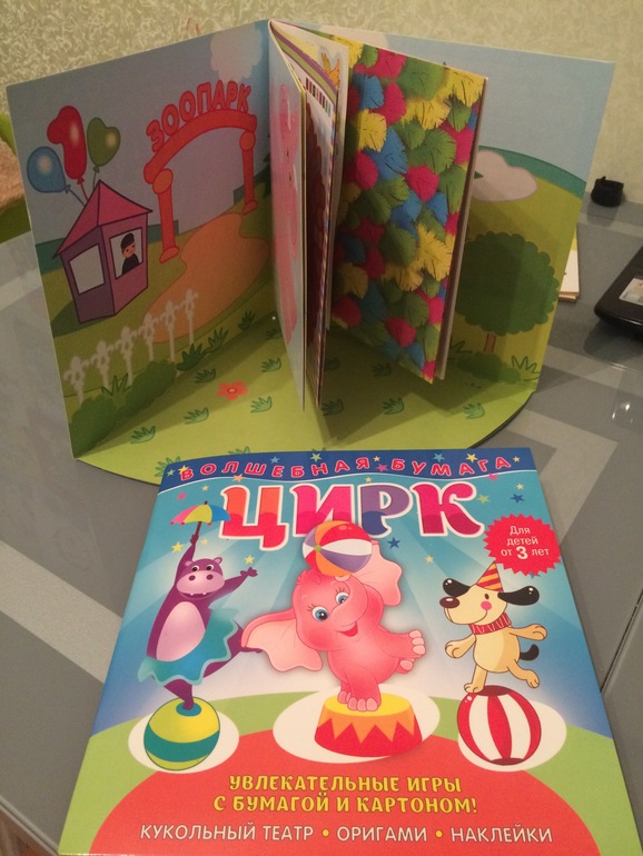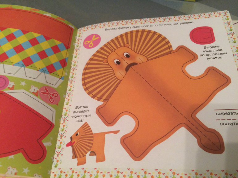В книжке про Цирк тоже самое, за исключением оригами. Здесь предлагается вырезать и собрать животных.