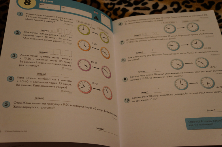 В тетради Кумон Задачи 3 уровня изучают расстояние и два урока отводится на задания. связанные со временем. Далее умножение и деление, задачки с несколькими действиями.