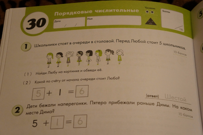 В каждом уроке есть специальное поле для заполнения. Ребенок должен вписать имя, дату проведения урока. В этом поле указан уровень сложности заданий. Существует 3 уровня: начальный, основной и продвинутый. Также есть поле, чтобы вписать баллы, полученные за выполнение заданий. Автор рекомендует использовать рабочую тетрадь для самостоятельных занятий и также самостоятельно сверять своими ответы с правильными... НО.. я этот момент строго контролирую, дабы не было соблазна списать с ответов... :)