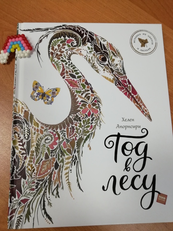 «Год в лесу» - потрясающей красоты книга, созданная в результате кропотливой работы художника Хелен Апорнсири. Она собирает папортник и цветы, делает из них гербарий, окрашивает в нужные цвета. А потом, из полученных заготовок делает красивые мозайки животных и растений. Техника создания картин с помощью природных материалов называется "осибана". В интернете можно найти работы в этой технике, они красивые, но таких миниатюрных работ, как создает Хелен Апорнсири, я не встречала.