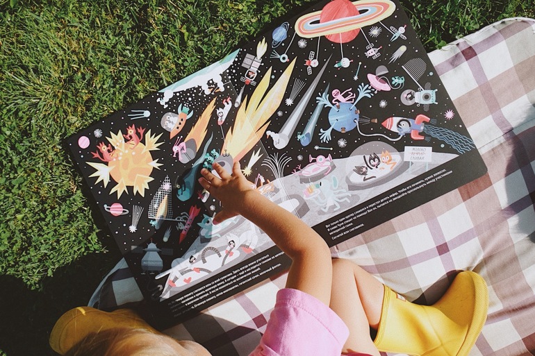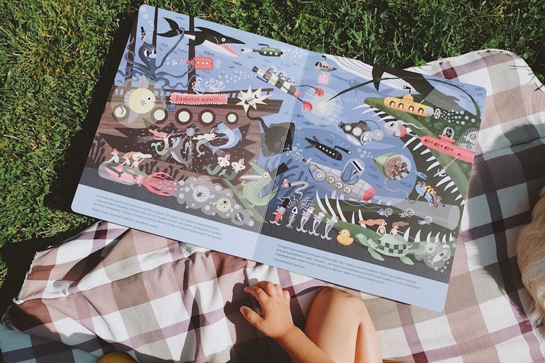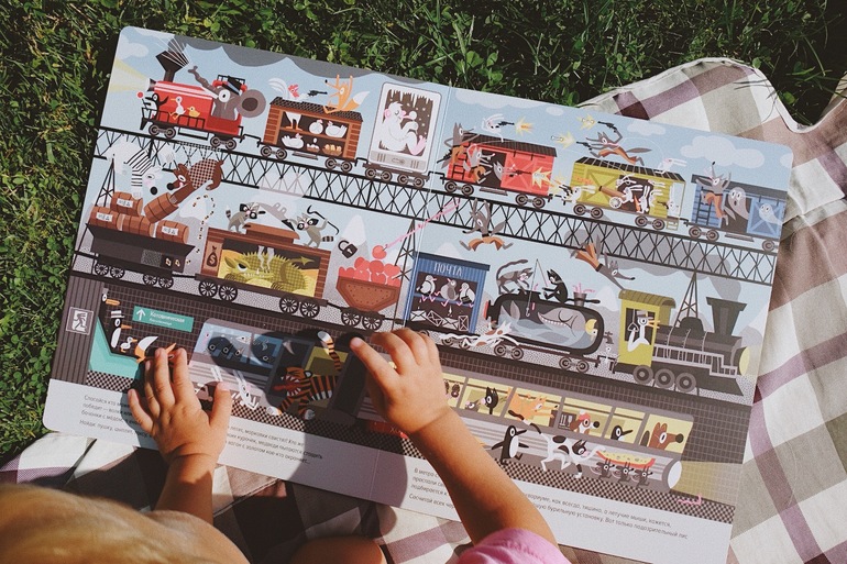 Эта весёлая книга отлично развивает внимание к деталям, расширяет кругозор и просто смешит ребёнка и его родителя.