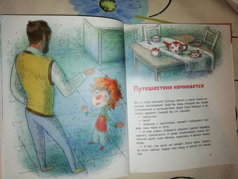 Вся серия книг про Чевостика идет в твердом переплете удобного формата с плотными листами и яркими иллюстрациями в одном стиле.Мне очень нравятся обложки книг, каждая энциклопедия проиллюстрирована небольшими картинки на тему энциклопедии и обязательно присутствует изображение Чевостика и дяди Кузи. Так же энциклопедии объединяет общее начало-Чевостик и дядя Кузя отправляются в волшебное путешествие на времяскоке (это такой прибор, изобретенный дядей Кузей). С помощью времяскока можно путешествовать по времени и пространству, оказаться в космосе или на дне океана. В общем, очень интересный прибор, позволяющий изучить мир вокруг нас со всех сторон.