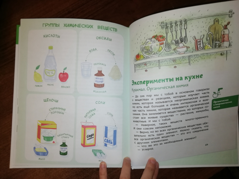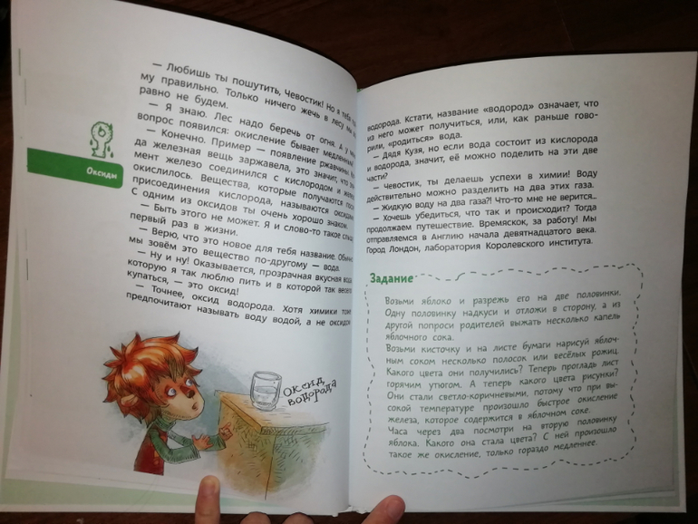 Увлекательная химия у нас пошла на ура, мы даже сделали дома пару эксперементов с уксусом и содой (это все что было под рукой во время чтения книги). Химией дети заинтересовались, планирую купить им набор юный химик и поэксперементировать с более сложными веществами.