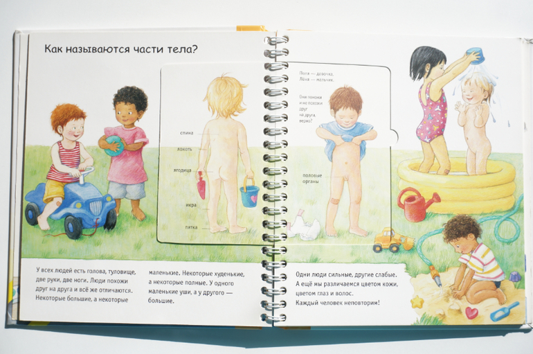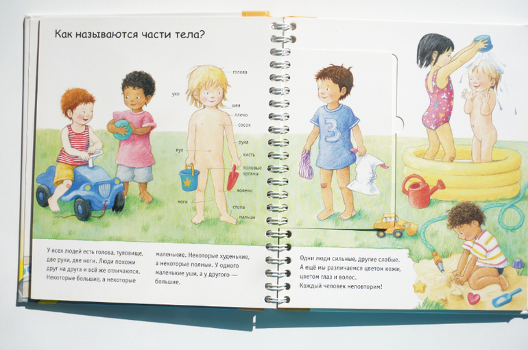 Малыш двухлетка задает вопросы. Он не хочет в ответ слышать подробную лекцию по анатомии. Ему достаточно понимать свои возможности, осознавать свое тело. Как сейчас говорят - построить карту своего тела. Это руки - они делают то-то, это ноги - они делают то-то. Это глаза, с помощью них мы можем это... И малышу очень важно облечь эти ощущения в слова. Для этих целей у нас с 1,5 лет была идеальная энциклопедия "Мое тело, мои чувства" из серии "Зачем? Отчего? Почему?" издательства АСТ.