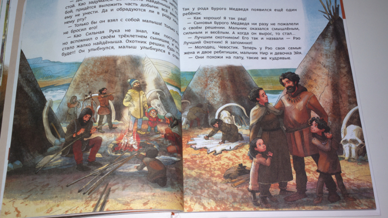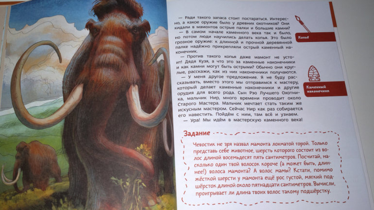 Нам с сыном было интересно почитать о орудиях каменного века и "побывать" в мастерской Старого Мастера, который изготавливал наконечник из камня.