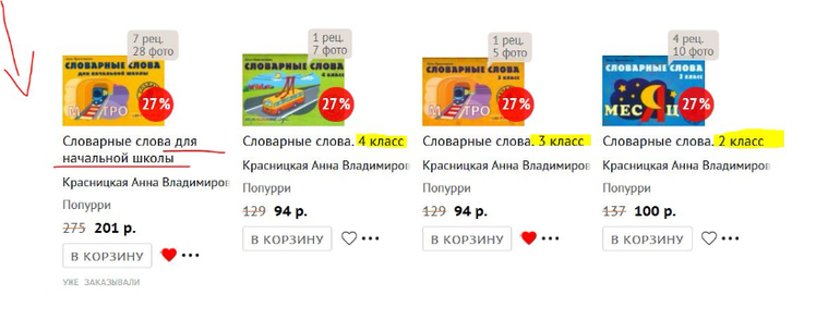 Смотрите внимательно, есть книга "Словарные слова для начальной школы", она стоит чуть дороже. А сеть отдельные книги, разбитые по классам.