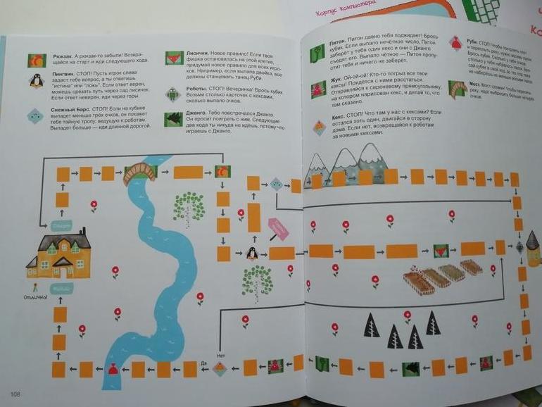Сын у меня обучается программированию на Питоне с помощью онлайн курсов, поэтому тема программистики в нашей семье звучит часто. Недавно всей семьёй играли в Змейку, которую Максим написал сам. Поэтому книга, которая учит мыслить как программист, была встрече на детьми с большим позитивом.