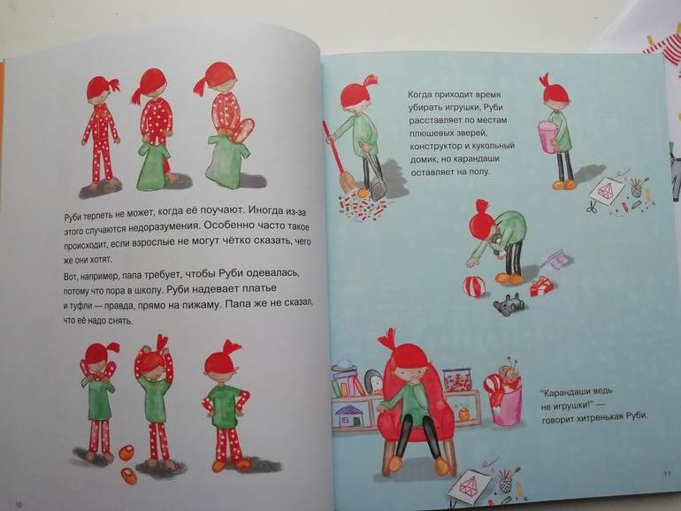 В первой главе мы узнаем о Руби новые подробности, она очень любит фантазировать и очень не любит, когда её получают. Когда папа от Руби требует, чтобы она одевалась-она одевает одежду прямо на пижаму, папа же не сказал, что её надо снять. Сфотографировала полностью первую главу: